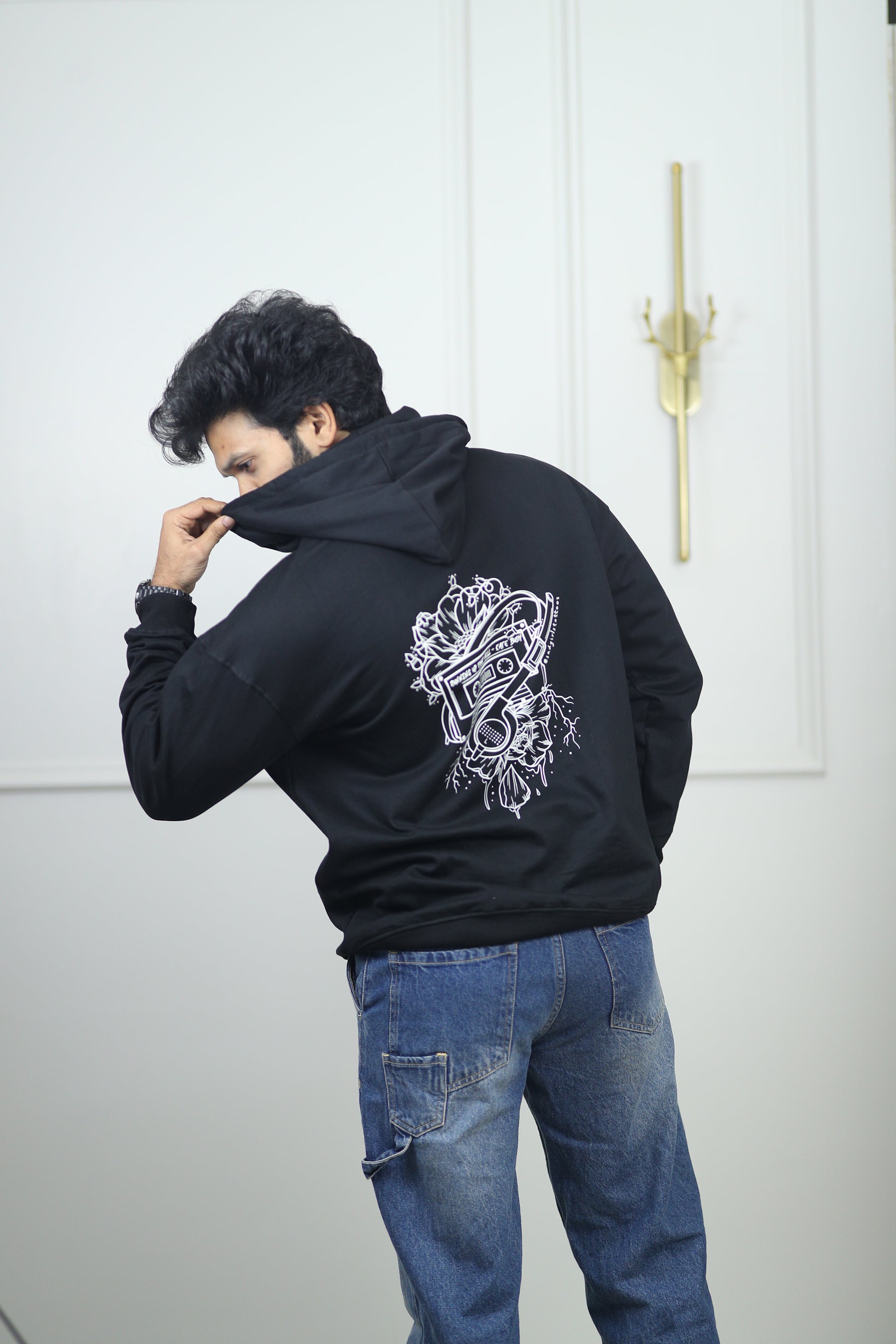 Music is Life Oversized Screen Printed Hoodie in Black (Limited Edition)